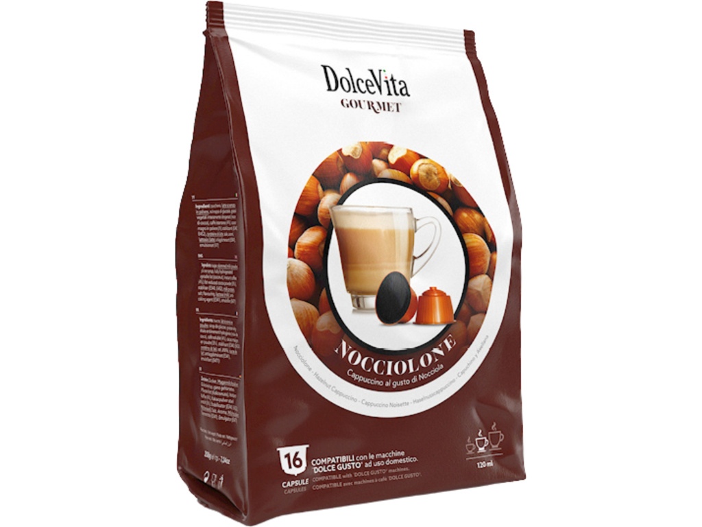 Ako jediný eshop na Slovensku Vám exkluzívne prinášame značku Dolce Vita, ktorá vyrába ochutené nápoje v kapsuliach pre kávovary Nescafe Dolce Gusto. Každá kapsula obsahuje až 13g náplne. Zaujímavosťou je aj to, že na prípravu jedného nápoja je potrebná iba jedna kapsula a nie dve. Každá kapsula je po naplnení hermeticky uzatvorená a preto si náplň zachová čerstvú arómu až do momentu použitia.
